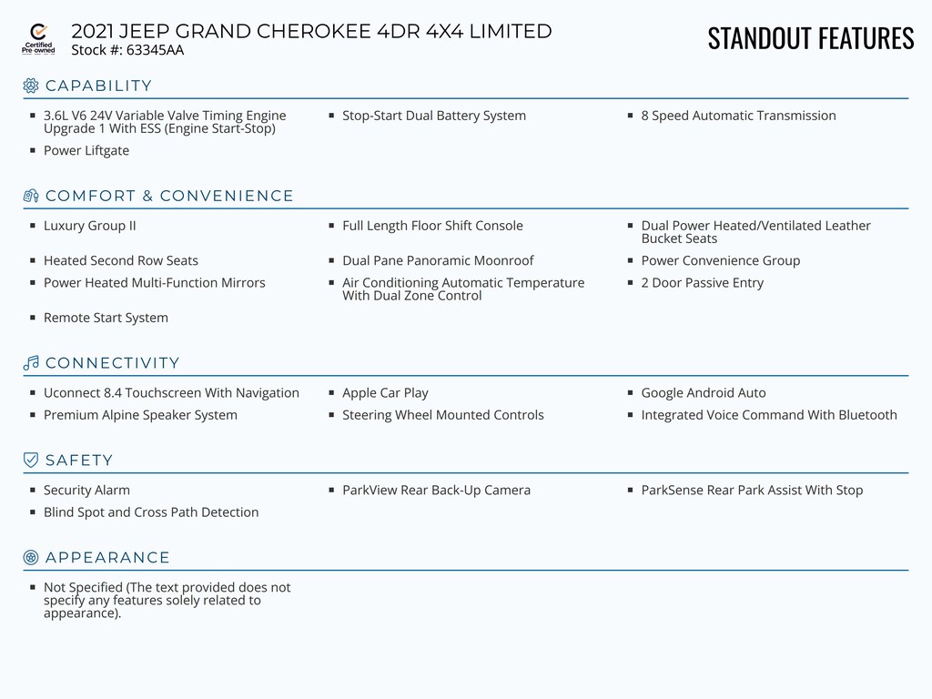 Standout features of this Certified Pre-Owned 2021 JEEP GRAND CHEROKEE 4DR 4X4 LIMITED include: