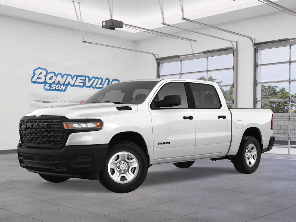 WHEELS: 18" X 7.5" STEEL PAINTED (STD), TRANSMISSION: 8-SPEED AUTOMATIC (850RE) (STD), TRADESMAN LEVEL 1 EQUIPMENT GROUP -inc: SiriusXM Satellite Radio, 2nd Row In Floor Storage Bins, Front & Rear Floor Mats, Rear Power Sliding Window, TIRES: 275/65R18 BSW ALL SEASON LRR (STD), QUICK ORDER PACKAGE 23A TRADESMAN -inc: Engine: 3.6L V6 24V VVT eTorque UPG I, Transmission: 8-Speed Automatic (850RE), GVWR: 6,900 LBS (STD), FRONT LICENSE PLATE BRACKET, ENGINE: 3.6L V6 24V VVT ETORQUE UPG I (STD), BRIGHT WHITE CLEARCOAT, BLACK, CLOTH BENCH SEAT -inc: Front Center Seat Cushion Storage, Seat Parts Module II, 3 Rear Seat Head Restraints, Rear 60/40 Folding Seat, Front Seat Back Map Pockets. This Ram 1500 has a strong Gas/Electric V-6 3.6 L/220 engine powering this Automatic transmission.