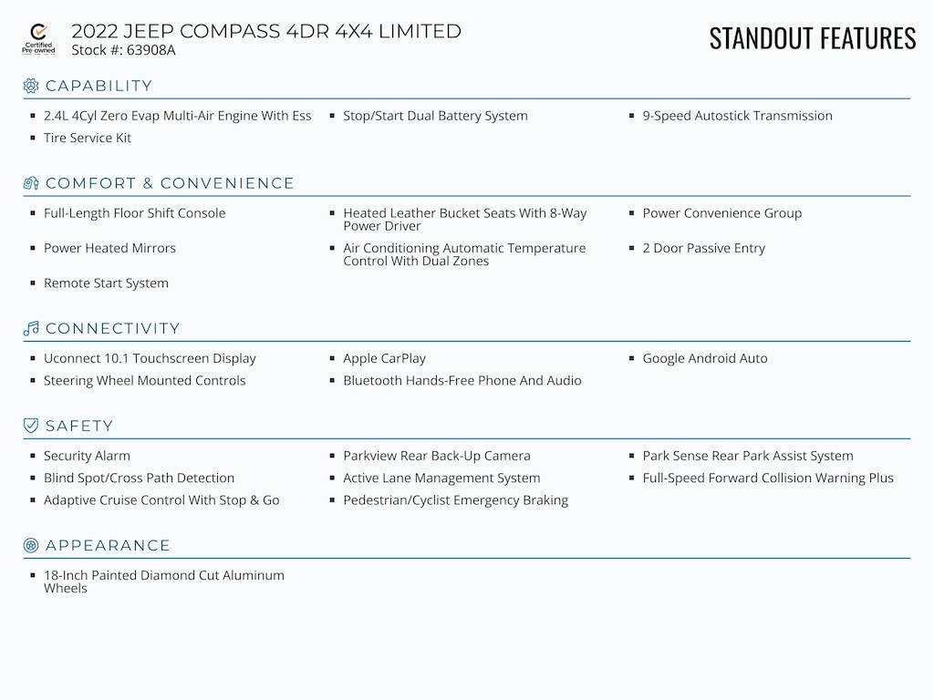 Standout features of this Certified Pre-Owned 2022 JEEP COMPASS 4DR 4X4 LIMITED include: